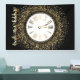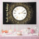 Happy New Year Banner with gold clock at midnight and gold glitter