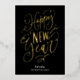Happy New Year Black Gold Script Modern Non Photo Foil Holiday Card