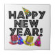 Happy New Year - Black Text with Party Hats Ceramic Tile