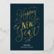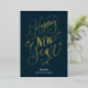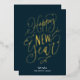 Happy New Year Blue Gold Script Modern Non Photo Foil Holiday Card