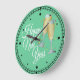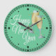 This New Year's clock features two glasses of champagne, colorful confetti and the text: Happy New Year all on a green background. The background color can be changed by choosing the customize it button and then edit.