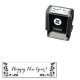 Rubber stamp With the text: Happy New Year!. The text is framed by a traditional Christmas decor frame with holly leaves and berries.