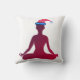 Lady silhouette, red figure meditating. New Yeras hat for happy holidays home decor cushion.