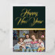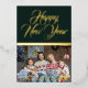 Happy New Year Royal Bottle Green and Gold Metallic Holiday Card With Photo Template and Text Template. Easily Customizable.