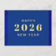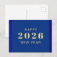 Happy New Year holiday postcard featuring blue colors with gold text. Great for those looking for holiday postcards to celebrate the new year. Nice blue colors. Custom text on the front and back of the card. Use the template to create your own custom Happy New Year holiday postcard.