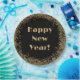 A black Happy New Year plate with a printed gold glitter design and the year that you can customize to add a message or a name. Edit using the text editor to make your own tableware for your celebration.