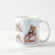 "Happy New Year" white, modern 4 family photo greeting/card gift mug with an elegant calligraphy script font. Order one for everyone on your Christmas list.