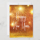 Happy New Year Fireworks Holiday Card. This design features gold orange fireworks sparkles with a shiny glitter. Elegant script typography. For further customization, feel free to contact me at kbasandra@gmail.com.