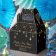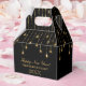 Happy New Year Gold and Black String Lights Favor Box. This design features elegant gold glittering string lights with the words Happy New Year. Personalize this custom design with your family name, year, and custom celebration greeting. Perfect for a New Year's Eve Party!