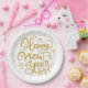 Happy New Year Gold Calligraphy Script Paper Plates