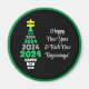 Happy New Year Green and White Tree Festive Fun Magnet