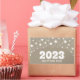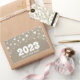 Natural beige color background, white stars garlands, happy new year 2023 customizable text