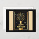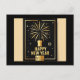 A festive New Year card featuring a golden firework display against a black background. The words 'Happy New Year' are prominently displayed in bold, golden letters, with 2025 elegantly positioned below. The card is bordered by a subtle cream color, enhancing the celebratory theme. A sleek gold pen rests beside the card, suggesting readiness for a personal message.