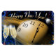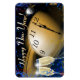 4” x 6” flex-style magnet with an image of a clock with Saturn rings that is about to strike twelve, and two glasses of champagne on a blue and black confetti background. See the entire New Year Magnet collection under the HOME category in the HOLIDAYS section.