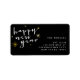 'Happy New Year' Simple Calligraphy Script Starbursts Fireworks, Black And Gold, Modern Holiday Return Address Label / Mailing Labels.