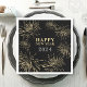 This Happy New Year black and gold napkin features a modern, elegant, and classy illustration, complete with prominent fireworks.