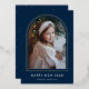 Happy New Year Navy Arch Photo Foil Holiday Card