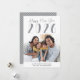 Happy New Year! Share your favorite family photo with this beautiful photo card with your message in chic lettering and a silver gray and white stripe design on the back.