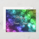 This card is perfect to wish your friends and family a happy new year! It features a trendy bokeh effect background with a gradient of pink, purple, blue, green and yellow. On top of the background are the words "Happy New Year" in a scripted text.