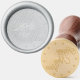 Before the wax hardens, gently and evenly press the wax seal stamp into the melted wax, ensuring it's centered.