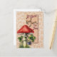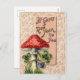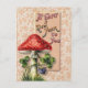 A reproduction of a vintage "Happy New Year" postcard that displays the four leaf clover and a lucky mushroom. This card bears emblems of luck and good fortune for the New Year.
