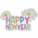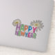 6” x 6” custom-cut vinyl sticker with an image of “Happy New Year” printed in multi-colored block lettering and two gold fireworks. See matching square sticker, confetti, label and wrapping paper. See the entire New Year Sticker collection in the HOLIDAYS section.