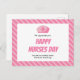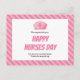 This charming postcard celebrates Nurses Day with a vibrant pink and white striped background, adding a touch of joy and energy to the occasion. The design features a stylized nurse's cap with a plus sign, symbolizing the caring profession, set above a bold declaration of "HAPPY NURSES DAY" in crisp, eye-catching typography. Below, a heartfelt message of appreciation reads, "We appreciate you. You are our country's honor. Thanks for everything!" This design encapsulates the spirit of gratitude and respect we hold for nurses and their unwavering dedication to healthcare.