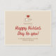Celebrate a healthcare hero with this warm and thoughtful Nurses Day postcard. The design features a nurturing hand illustration cradling a heart, symbolizing the care and love nurses provide daily. "Happy Nurses Day to you!" is gracefully scripted in a rich red hue, conveying heartfelt appreciation and recognition. The addition of a personalized greeting makes this card an intimate token of gratitude. Ideal for honoring the dedication and compassion of nurses everywhere.