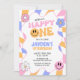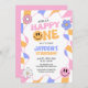 Happy One Y2k Retro Groovy Smile Face Birthday Invitation