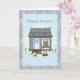Beautiful Ostara Spring House (Vernal Equinox) Blank Greeting Card. Featuring a sweet digital artwork of a little blue spring house with a flower garden, Ostara hare and his basket with eggs, with a beautiful blue flowery border by XG Designs NYC. A lovely, card to wish happy blessings to your friends, family and neighbors. This card is blank inside and ready for your hand written personal message, or add your message right now by clicking on 'customize' button on this page, select your font style, color and size and type in your message on the right hand side, and it will be printed on your ordered cards. This card is available both blank and with an inner holiday greeting in our shop. Please visit our shop for other designs and styles of Ostara Greeting cards and gift items.