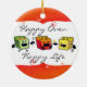 Cute happy ovens with utensils and a cookie on this culinary Christmas ornament for baking or sweets themes or for gifting your favorite chef, baker, or cook.