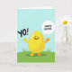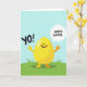 This greeting card features a friendly, egg-shaped character in bright yellow standing on a strip of rich green grass, with a small shadow beneath it. The character has short orange arms and legs, and it holds its arms out as if greeting a close friend with an eager, welcoming pose 🐰. Its face is simple and sweet, with two small black oval eyes, rosy cheek circles, and a curved red smile that reads like a warm grin across the room. The background is a smooth sky-blue field that keeps the focus on the character and its sunny color. On the left side, the text “YO!” appears in black, set slightly away from the figure so it feels like a casual call-out. On the right, a rounded speech bubble contains “HAPPY EASTER.” in black, positioned near the character’s head as if it’s speaking directly to someone special 🌷. A soft highlight arcs across the yellow surface, and the grass sits as a flat green band along the bottom edge.