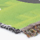 A quality printed throw has its advantages. This is a much finer weave throw than its loopier cousins, and though lighter, it is worth the investment for custom room accessorizing. The back is much prettier than the typical brown, and the fringe on the long sides very vivid, the selvage nicely done. Before photographing, I washed the throw in cold water, delicate, with a thicker woven throw the same size. On tumble dry low, this throw was dry in half the time as the other. This is a very practical quality if you use throws for furniture covers or to wrap up in frequently. The sleekness of the fabric makes it a great layer for accenting or protecting without the feeling of sitting on too much stuff. Perfect for napping or when you feel a light chill coming on. The color printing is beautiful and on this fabric, matched the design and color of my Photoshop image. This is an advantage for blending room fabrics and colors. The fringe on the short sides prints the colors from the design image and therefore varies from the side fringe. I streaked a white fractal line through the plaid pattern to give the illusion of weaving. This printed as crisp as an illusory thread, and put some white in the short side fringe, showing another advantage of print vs loomed- for artistic purposes, line lines, detail, and color integrity can be planned and preserved. My loomed throws have color limitations and more of a needlepoint texture. Print throws reproduce an exact image. The throw felt a little stiff straight out of the package, but this went away in the first delicate wash. Of course I searched the wash water for ink or bleeding and there was none.