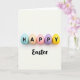 Designed with five smooth egg-shaped forms lined up across the upper middle, each one carries a single black letter that reads “HAPPY.” The eggs are painted in gentle pastel tones—light aqua, creamy off-white, soft rose, pale lavender, and sunny yellow—like a sweet spring exchange between friends 🌷. Below them, the word “Easter” appears in a flowing, cursive-style lettering, set slightly lower and centered, adding a tender, affectionate contrast to the crisp letters above 🐰. The background is bright white and uncluttered, letting the colors feel calm and close, as if the message is being offered with a quiet smile. Soft, diffused lighting rounds the edges of each egg and gives them a lightly glossy look. Subtle shadows fall just beneath the eggs and the lower word, keeping everything grounded without feeling heavy. The black lettering stands out clearly against the pastel eggs, while “Easter” sits underneath in darker ink with smooth curves and airy spacing.