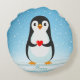 Happy Penguin Holding a Heart Round Pillow
