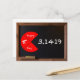 Chalkboard message about Pi Day on March 14th; as the shorthand number for pi is 3.14.