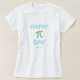 Happy Pi Day tee shirt. Simple and cheerful design in light blue and green. A line of custom text at the bottom can be used to add a date or a short text. Fun shirt for a math lover and a proud science geek.