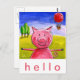 A very happy pig, with a mouse in a hot air balloon in the background. Painting by s t u d i o L e n n a r t www.studiolennart.com