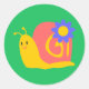 Cute pink colorful snail against a cute grass green background. Colorful girly design. Happy and joyful snail.