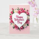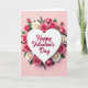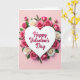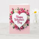 This Valentine's Day card shows a white heart in the center, surrounded by a ring of roses on a soft pink background. Inside the heart, the text reads “Happy Valentine’s Day” in flowing fuchsia lettering. The fuchsia roses look full and open, and the white roses range from small buds to wider blooms. Deep green leaves and a few thin, pine-like sprigs are tucked between the flowers, adding contrast around the heart. The overall layout feels like a top-down view, with the heart and flowers neatly arranged to frame the message. The colors stay mostly pink, white, fuchsia, and green, giving the card a sweet and romantic look 💕❤️. Share it with someone special and pass along a little extra love this Valentine’s Day.