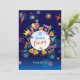 Happy Purim greeting card. Translation from Hebrew: Happy Purim! Purim Jewish Holiday poster with stars of David, traditional Hamantaschen cookies, gragger toy noisemaker, balloons, musicians, masks, Purim basket on festive confetti background. Wish a great Purim celebration. Carnival, Masquerade, Festival, Kids Party, Israel. Invitations & Stationery > Greeting Cards > Holiday & Seasonal Gifts Card. Design with text template. Personalize them by adding name or wishes text.