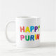 Happy Purim Festival Kids Party Carnival Colorful Decoration with Purim Gifts Festive Pattern for Coffee Mug. Translation from Hebrew Text: Happy Purim! Purim Jewish Holiday poster, Decorative Pattern and Text. Purim gifts, Stars of David, traditional Hamantaschen cookies, gragger toy noisemaker, balloons, musicians, masks on festive confetti background. ("Mishloach Manot" - Purim) Carnival, Masquerade, Festival, Kids Party, Israel. Trendy Design for Home > Kitchen & Dining > Drinkware > Mugs & Cups Purim Festival Party Decoration