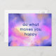 A postcard with an inspirational quote which says "do what makes you happy". The background is a luminous space image with ethereal cloud forms and shining stars.