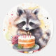 Happy Raccoon with Birthday cake Classic Round Sticker