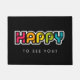 Happy, a word full of joy, designed with colorful rainbow colors.