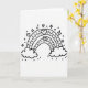 This greeting card shows a black-and-white drawing of a rainbow stretching across the middle of the front. Two smiling clouds sit at each end of the rainbow, with simple faces that look happy and calm. The rainbow is made of several curved bands, and each band is filled with small, evenly spaced dots for extra detail. Around the rainbow, you can see small hearts and four-point stars floating like little decorations in the sky. One larger heart sits on top of the rainbow near the center, and another heart rests below the arc, adding a sweet romantic touch 💕❤️. There isn’t any text printed on the card in the image, so the design keeps the focus on the picture itself. Share it with someone special and let it help you send a little extra love on Valentine’s Day 😘.