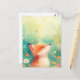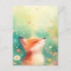 This enchanting postcard features a blissful red fox with its head tilted back in a moment of pure serenity. The artwork is rendered in a dreamlike watercolor style, utilizing a soft and luminous palette of warm orange, mint green, and golden yellow. The fox is surrounded by delicate spring wildflowers and shimmering light particles that create a magical, airy atmosphere. With its peaceful vibe and painterly textures, this piece captures the quiet beauty of nature. This postcard is a perfect choice for sending a cheerful hello, a sweet birthday wish, or a "thinking of you" note to any wildlife lover.