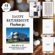 Personalized oversized retirement greeting card featuring a cover photo (group photo or picture of the workplace), the greeting HAPPY RETIREMENT NAME FROM ALL OF US AT COMPANY/ORGANIZATION NAME on the front, a photo collage of 40 square pictures on the inside left side to include coworkers, fellow employees and workplace photo memories and your custom message on the inside right side and back side with plenty of space for handwritten well wishes and signatures. Consider filling any extra templates with company logos or delete the photo template square to leave block areas for adding your own pre-printed text or leaving space for handwriting personal messages or contact the designer for a different amount of photo templates. The sample shown is 18" x 24"--other sizes are available on the ordering page. Makes a meaningful commemorative keepsake for a retirement or someone who has resigned. ASSISTANCE: For help with design modification or personalization, color change, resizing or transferring the design to another product, contact the designer BEFORE ORDERING via the Zazzle Chat MESSAGE tab below or email makeitaboutyoustore@gmail.com.