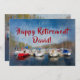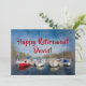 Happy Retirement Celebration Invitation Card, designed with sailboats on blue tranquil water in a scenic setting. Honor a special person about to retire with a party in their honor. To personalize, simply insert the person's name and your event details using our easy template.