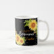 An elegant ,yellow sunflower Happy Retirement mug comprising of a black background decorated with a pretty floral watercolor yellow sunflower with a bee and strings of lights. The perfect stylish gift to give to someone on their retirement. Personalize with a name . Makes a perfect gift for office staff, coworker or boss, teacher and anyone really.